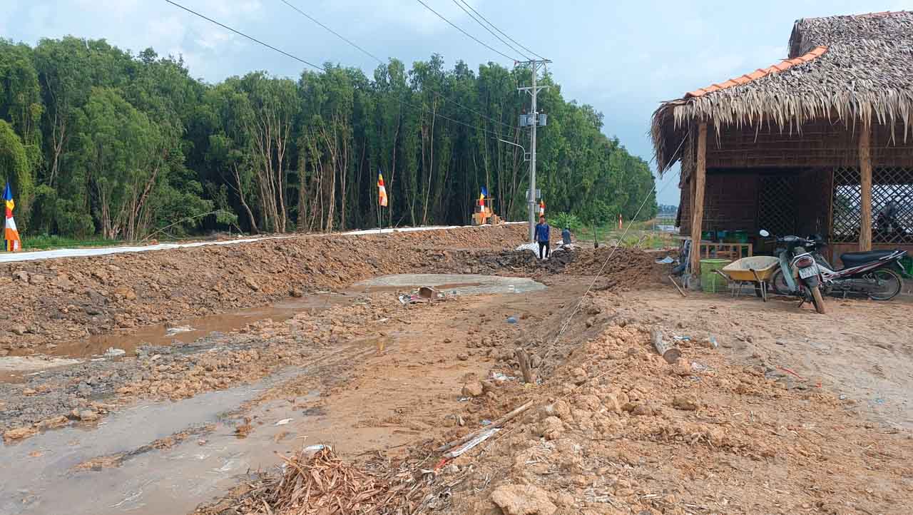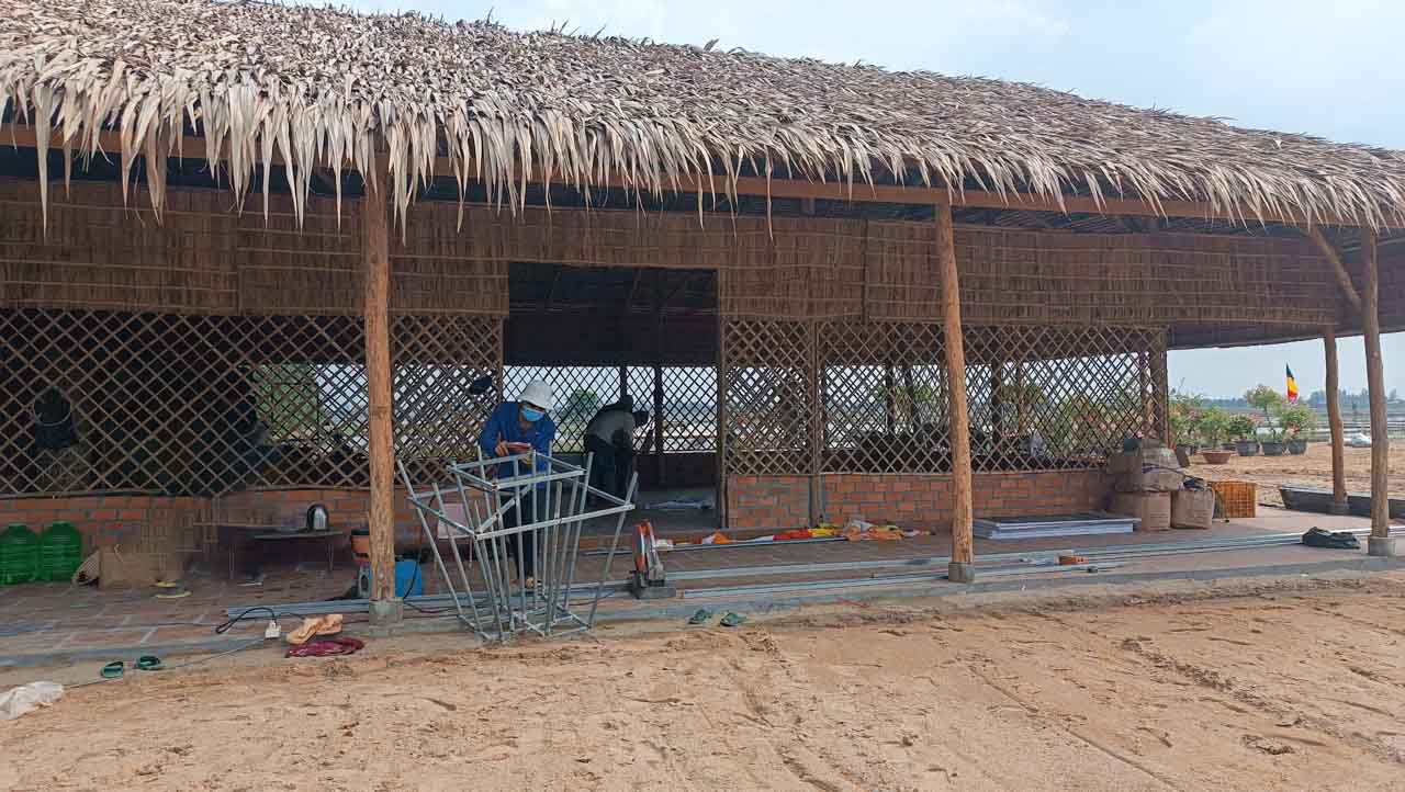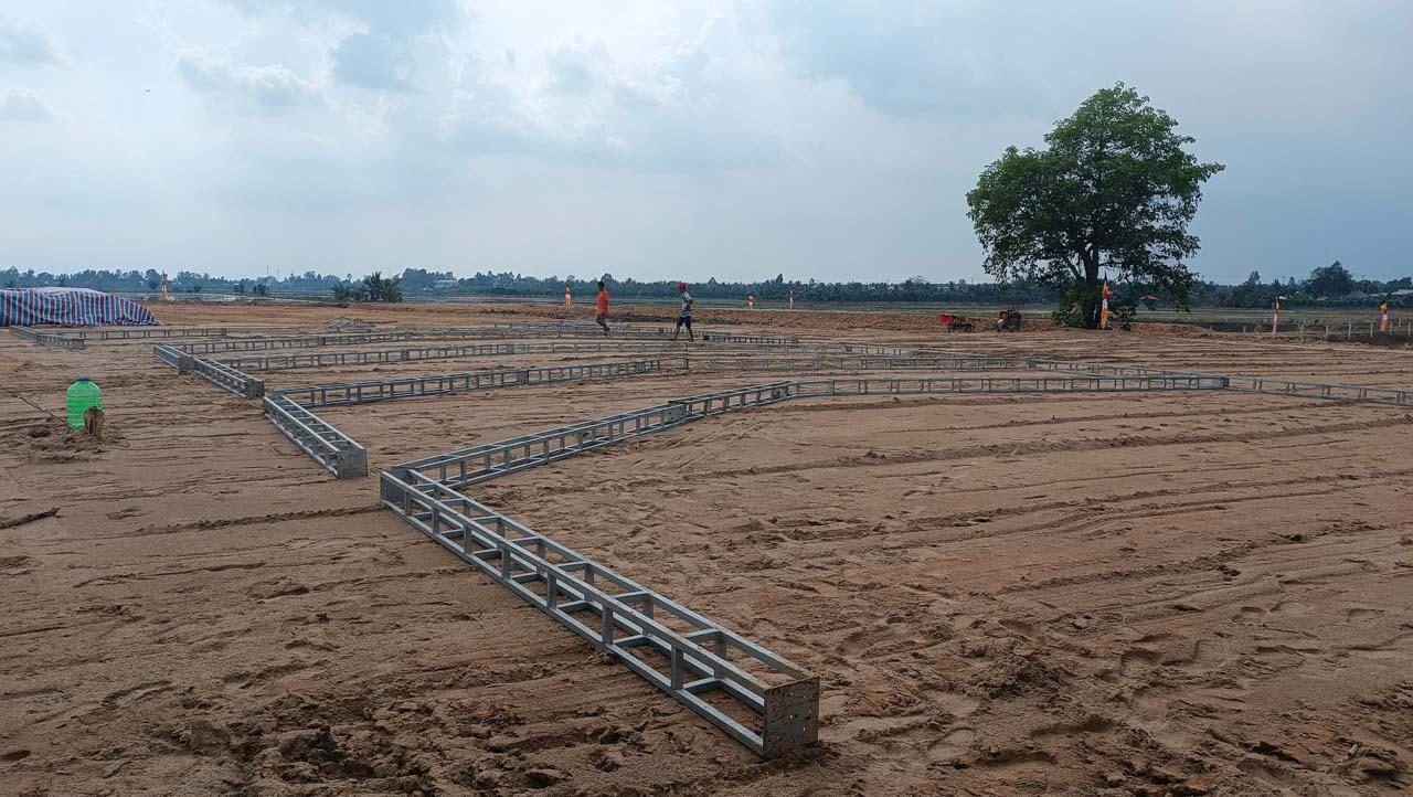 Các hạng mục cắm cờ, san lấp mặt bằng, rải đá, bơm cát để làm phẳng nền đất, chuẩn bị dựng rạp phục vụ cho lễ khởi công đang được tiến hành ráo riết. Mỗi công đoạn đều được chăm chút cẩn thận, thể hiện sự tâm huyết và trân trọng đối với dự án đặc biệt này.
