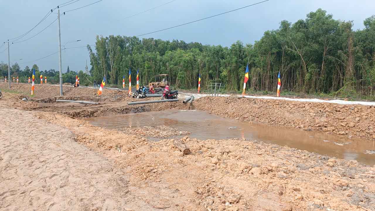 Các hạng mục cắm cờ, san lấp mặt bằng, rải đá, bơm cát để làm phẳng nền đất, chuẩn bị dựng rạp phục vụ cho lễ khởi công đang được tiến hành ráo riết. Mỗi công đoạn đều được chăm chút cẩn thận, thể hiện sự tâm huyết và trân trọng đối với dự án đặc biệt này.