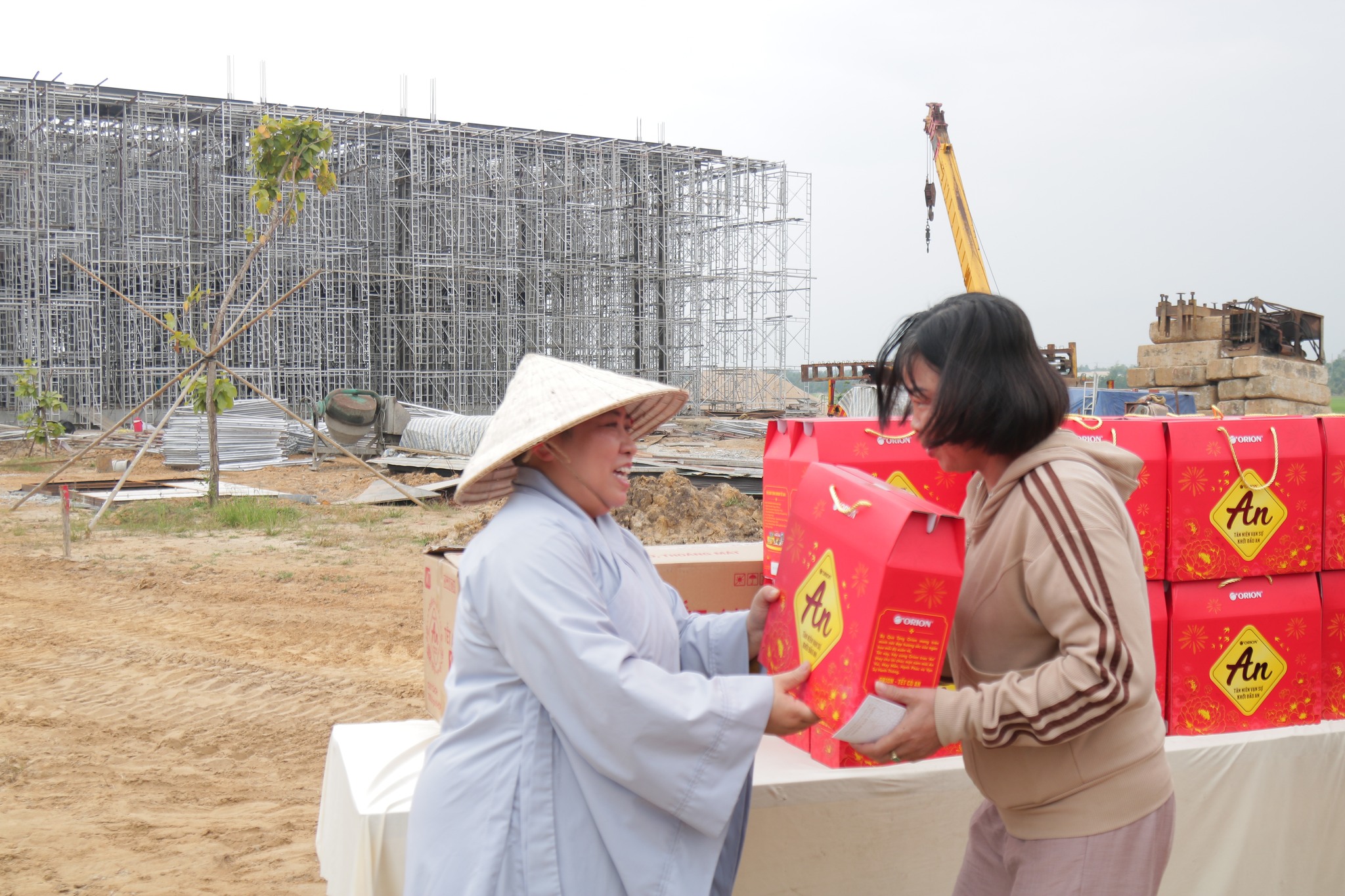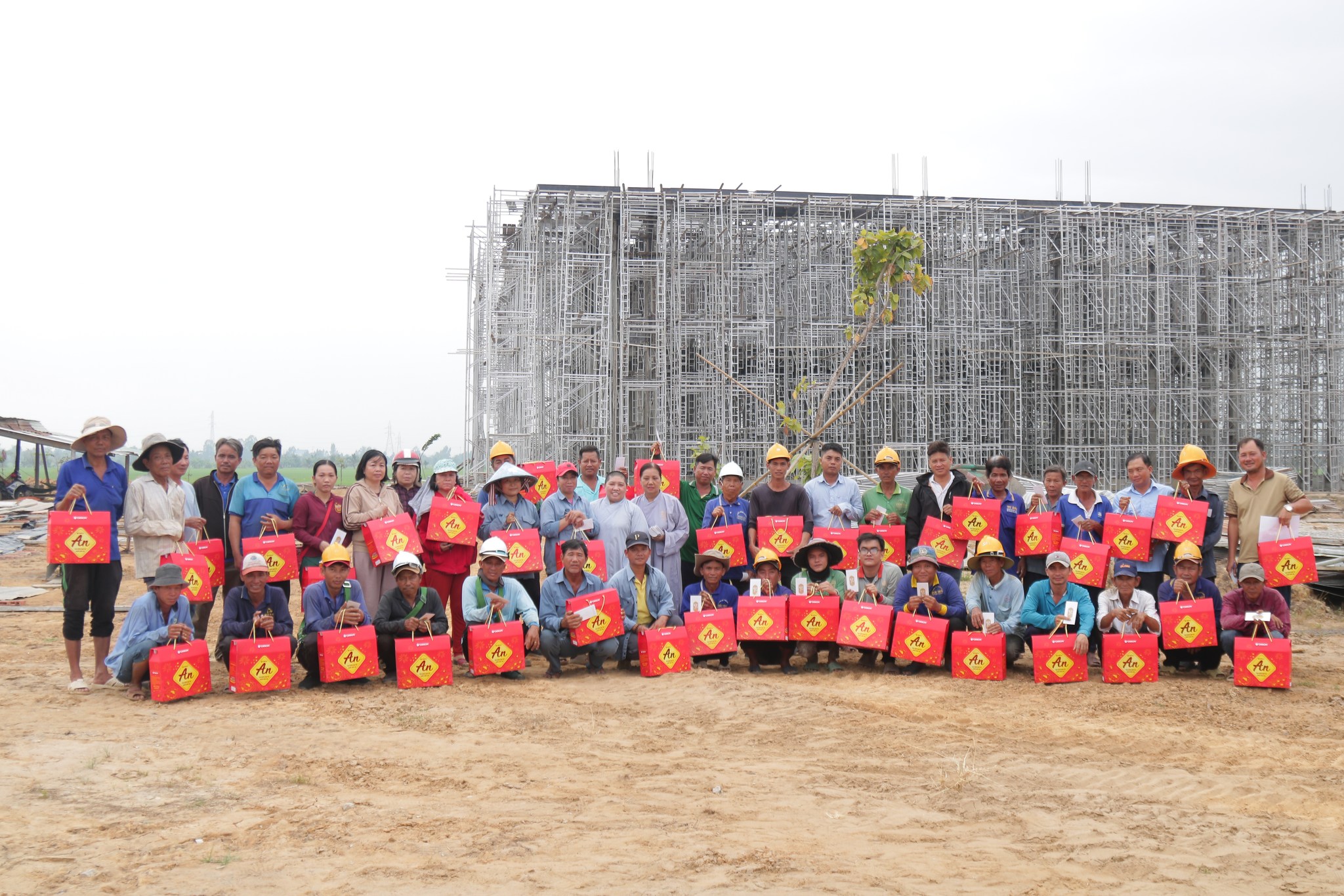 Thừa ủy nhiệm của Thượng tọa, Ni sư Thích Nữ Như Thuận đã có mặt tại công trường, mang theo hơi thở của mùa xuân và lòng biết ơn của chư Tăng Ni. Những phần quà Tết được trao đi, giá trị vật chất tuy có ngần, nhưng giá trị tinh thần lại vô lượng. Đó là sự hiện diện của tình thương, là lời khẳng định rằng: Trong ngôi nhà chung An Viên, không ai bị lãng quên, và sự cống hiến nào cũng được trân trọng.
