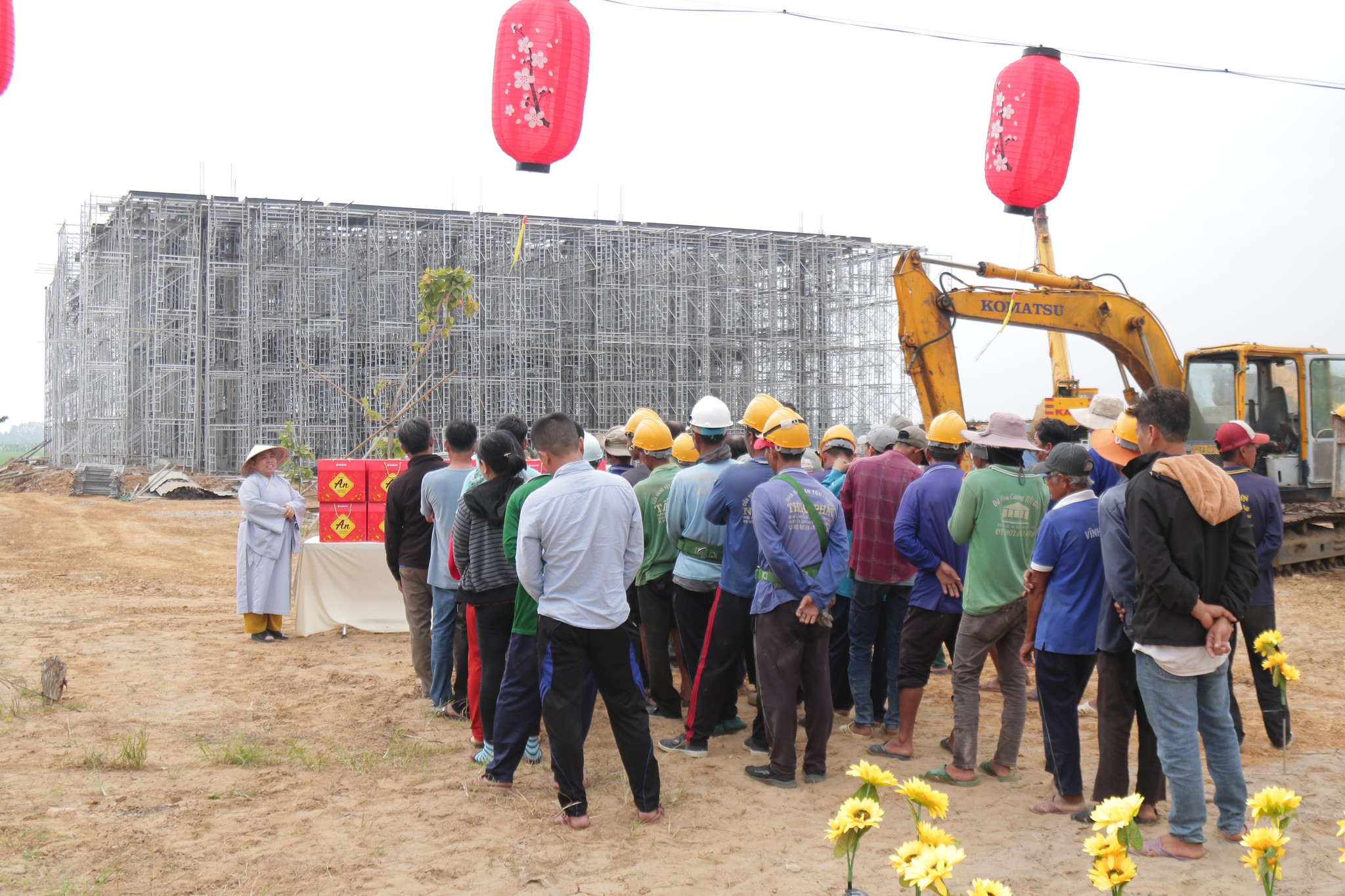 Thấu hiểu sâu sắc nỗi vất vả và giá trị thiêng liêng từ những giọt mồ hôi ấy, Thượng tọa Thích Phước Huệ – Chủ dự án, dù Phật sự đa đoan, vẫn luôn dành một góc trang trọng trong tâm tư cho đội ngũ nhân viên. Sự chỉ đạo sát sao và quan tâm của Thượng tọa chính là minh chứng cho tinh thần “Lục hòa cộng trụ” – xem người lao động như những người thân quyến thuộc cùng chung lo một đại sự nhân duyên.
